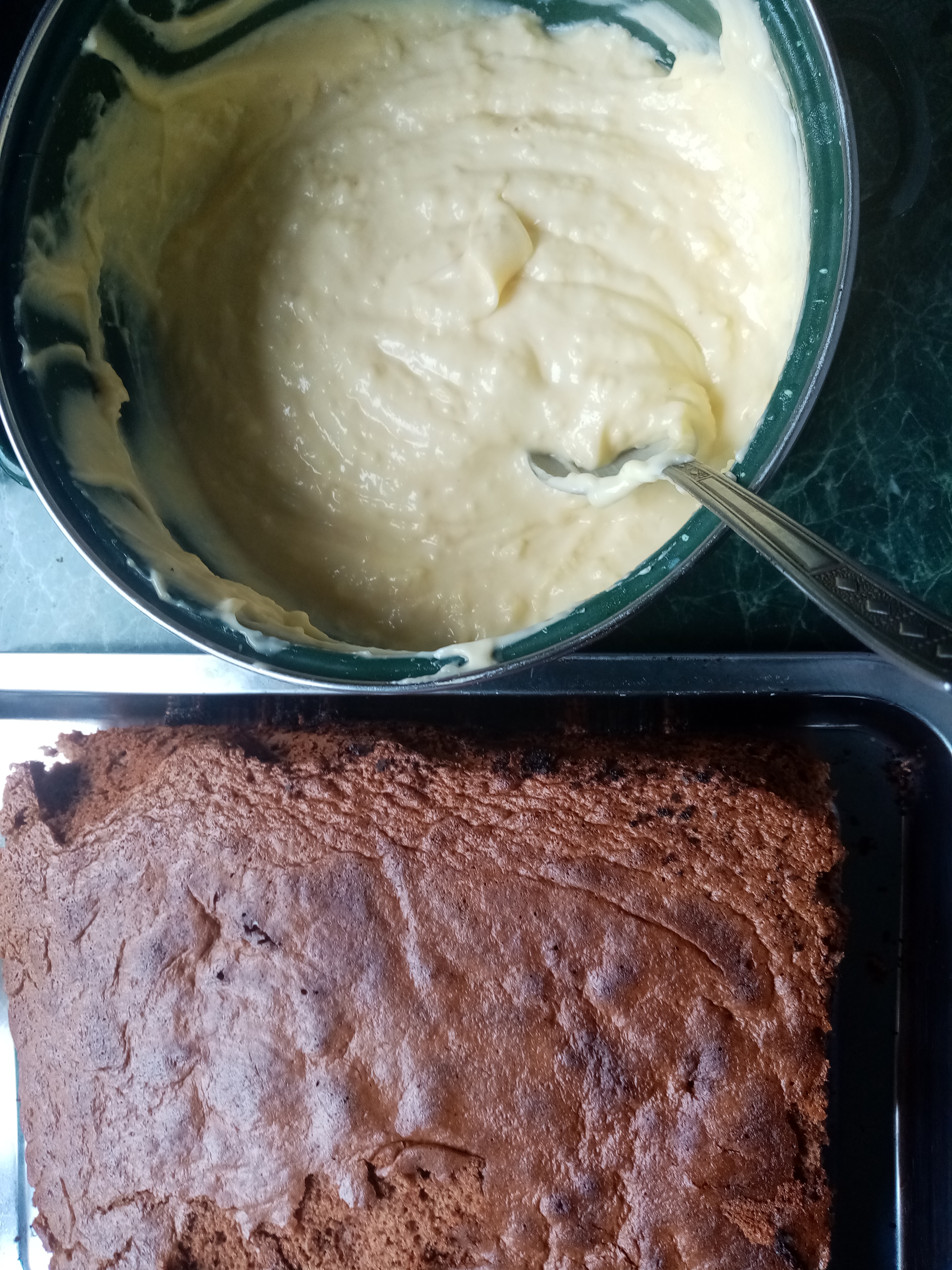Bladul este pufos, crema este super buna. Si o glazura din budinva si coca cola sau ciocolată topită.